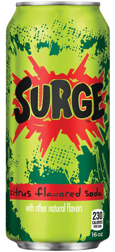 The same great taste from the 1990's is back, now in a larger 16 ounce can. SURGE is the bolder citrus soda that fuels a familiar rush from back in the day.